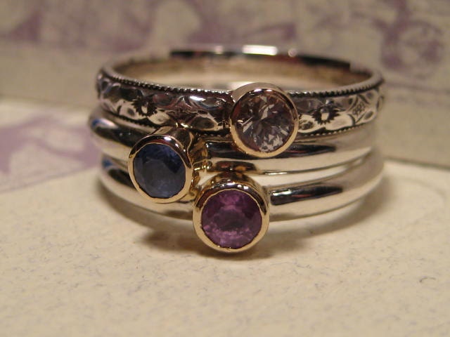 These hand-hammered sterling silver rings were inspired by the Chinese concept of shou, believed to be one of the three important elements of a good life. The rings are perfect for stacking to create a mother's ring ensemble, but are just as lovely worn Sapphire Garnet Jade Turquoise ... Read Article